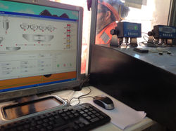 INFORMA AL OPERADOR ESTADO EN QUE SE ENCUENTRA EL CICLO DE PRODUCCION PERMITE REALIZAR AJUSTES DE CALIBRACION. INGRESANDO A UN MENU CON CLAVE, SE PUEDEN REALIZAR CORRECCIONES DE MATERIAL AL VUELO EN LOS DIFERENTES ELEMENTOS A DOSIFICAR AGUA, ARIDOS, ADITIVOS Y CEMENTO.