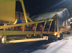 TODO EL CONJUNTO MONTADO SOBRE CHASIS COMPACTO CON EJE RUEDAS NEUMATICAS DOBLES Y PAQUETES DE RESORTES, LUCES DE POSICION PARA SU TRASLADO COMO SEMI REMOLQUE INCLUYE PLATO DE ENGANCHE.